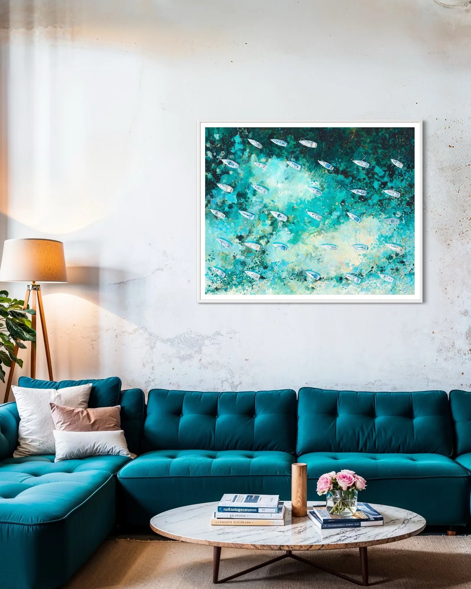 Rendered in a sophisticated palette of nautical blues and soft neutrals, this piece brings a sense of 'coastal calm' and maritime heritage to your interior. It is the perfect artwork for a study, a hallway, or a coastal home, serving as a timeless reminder of sunny days spent on the water in one of Britain’s most beautiful harbours.